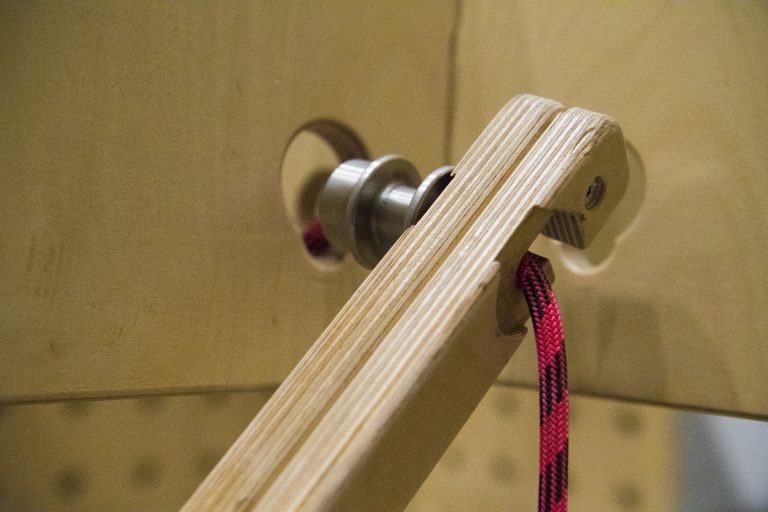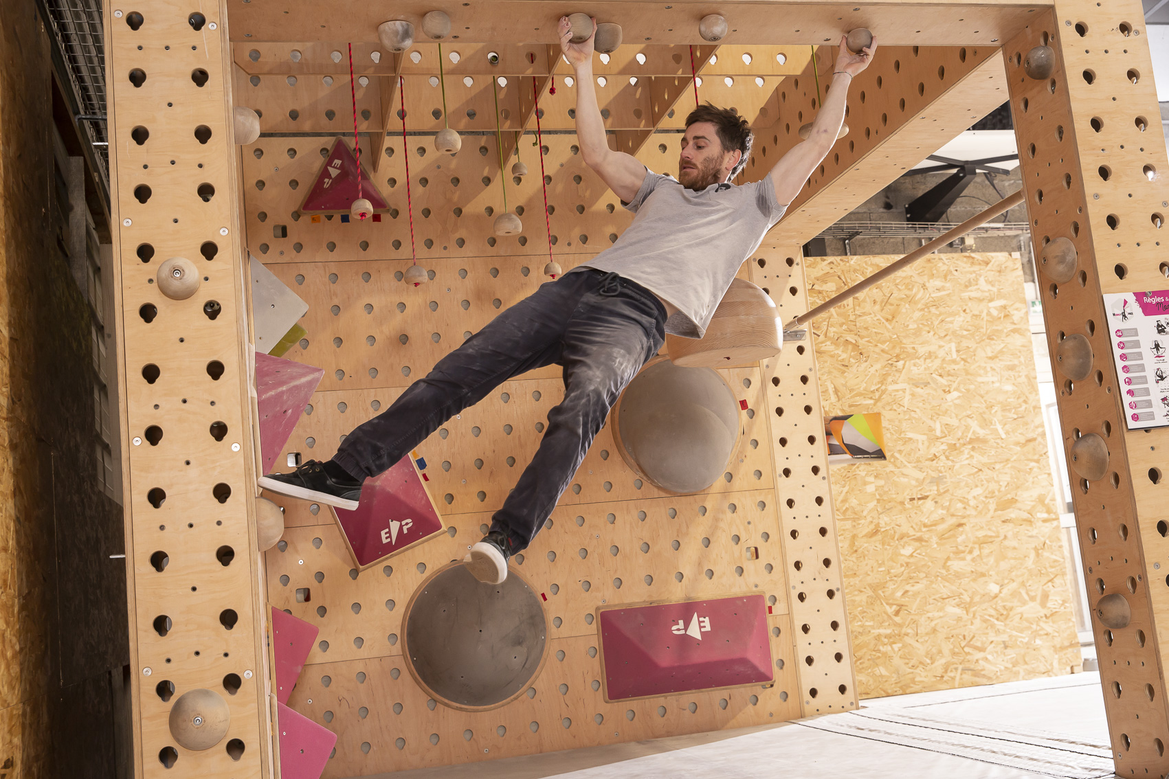 An einem Lochraster fixiert lassen sich verschiedene Trainingsgeräte wie klassische Stangen, Ringe und Holzkugel aber auch Klettergriffe und Volumen in beliebig anpassbaren Kombinationen einsetzen. MonkeySpace ist ein fantastisches Gerät um das physische und technische Können zu verbessern.