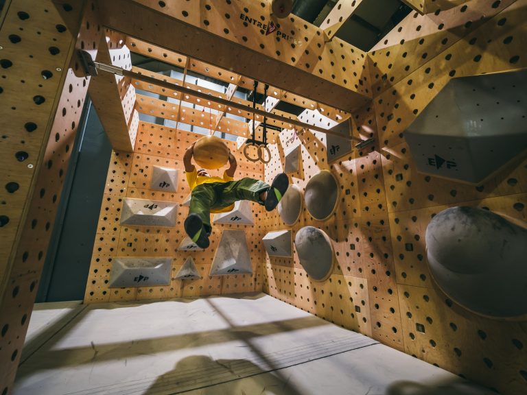 Um das Training vielfältiger und unterhaltsamer zu machen, kreierte EP-Climbing einen komplett auf Bausteinen basierenden, innovativen Trainingsraum: MonkeySpace.